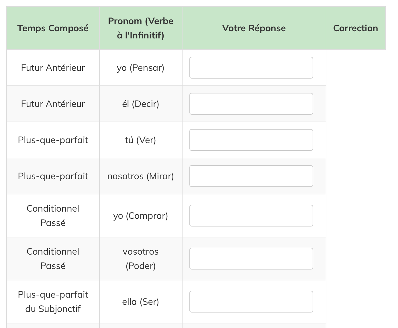 Nous proposons surtout de comprendre le fonctionnement de la conjugaison espagnole et pas seulement de l'apprendre par coeur puis de réciter (ce qui ne marche visiblement pas...)